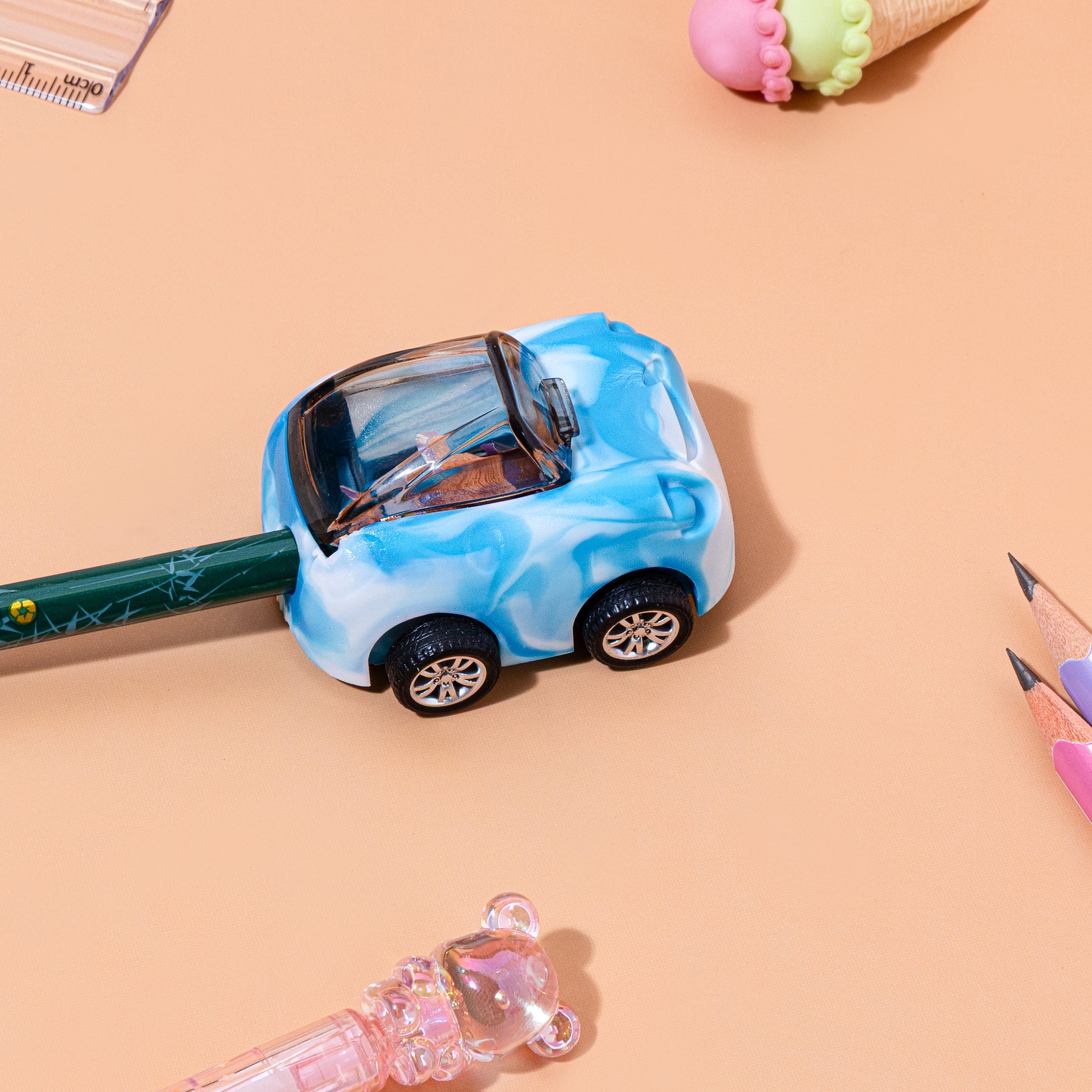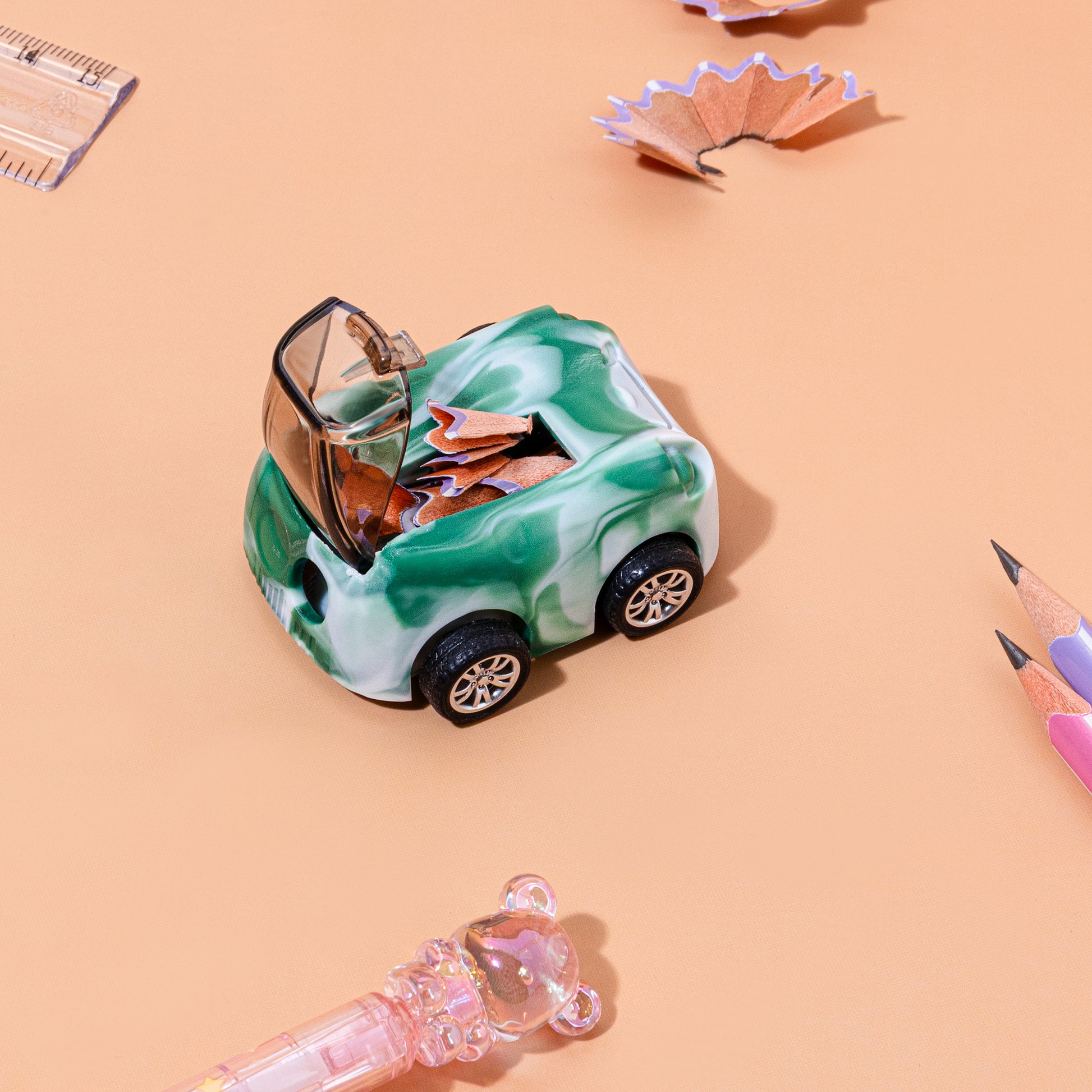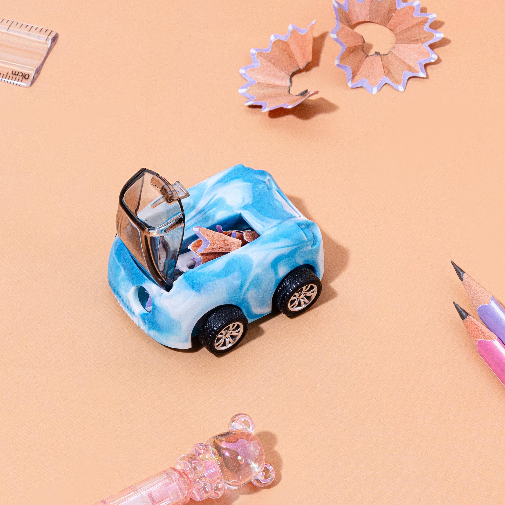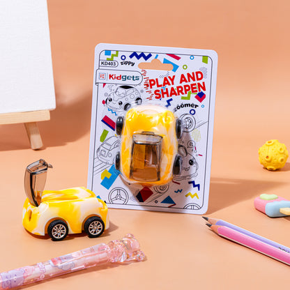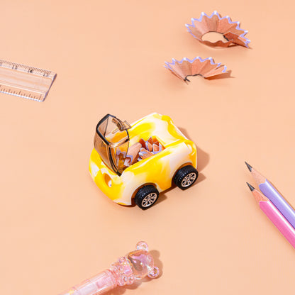 Playful Design: These sharpeners feature vibrant vehicle shapes, such as race cars or buses, often including functional moving wheels that allow them to be rolled like real toys.