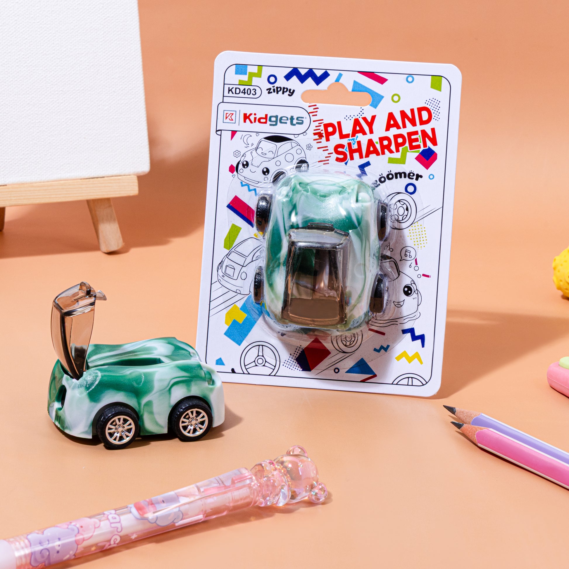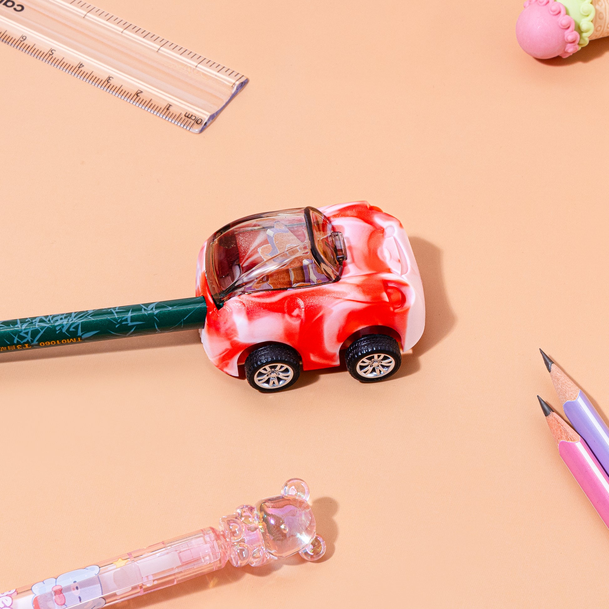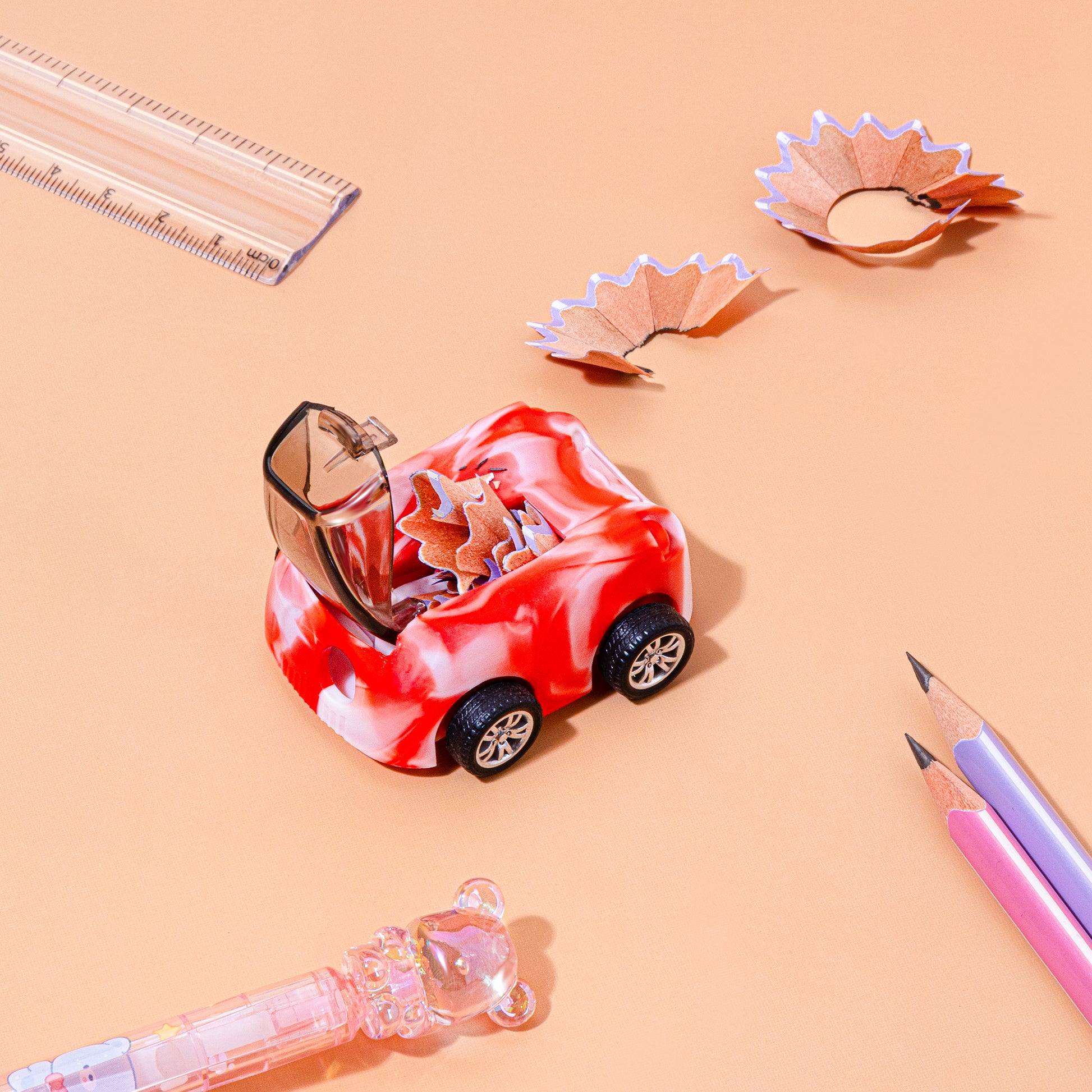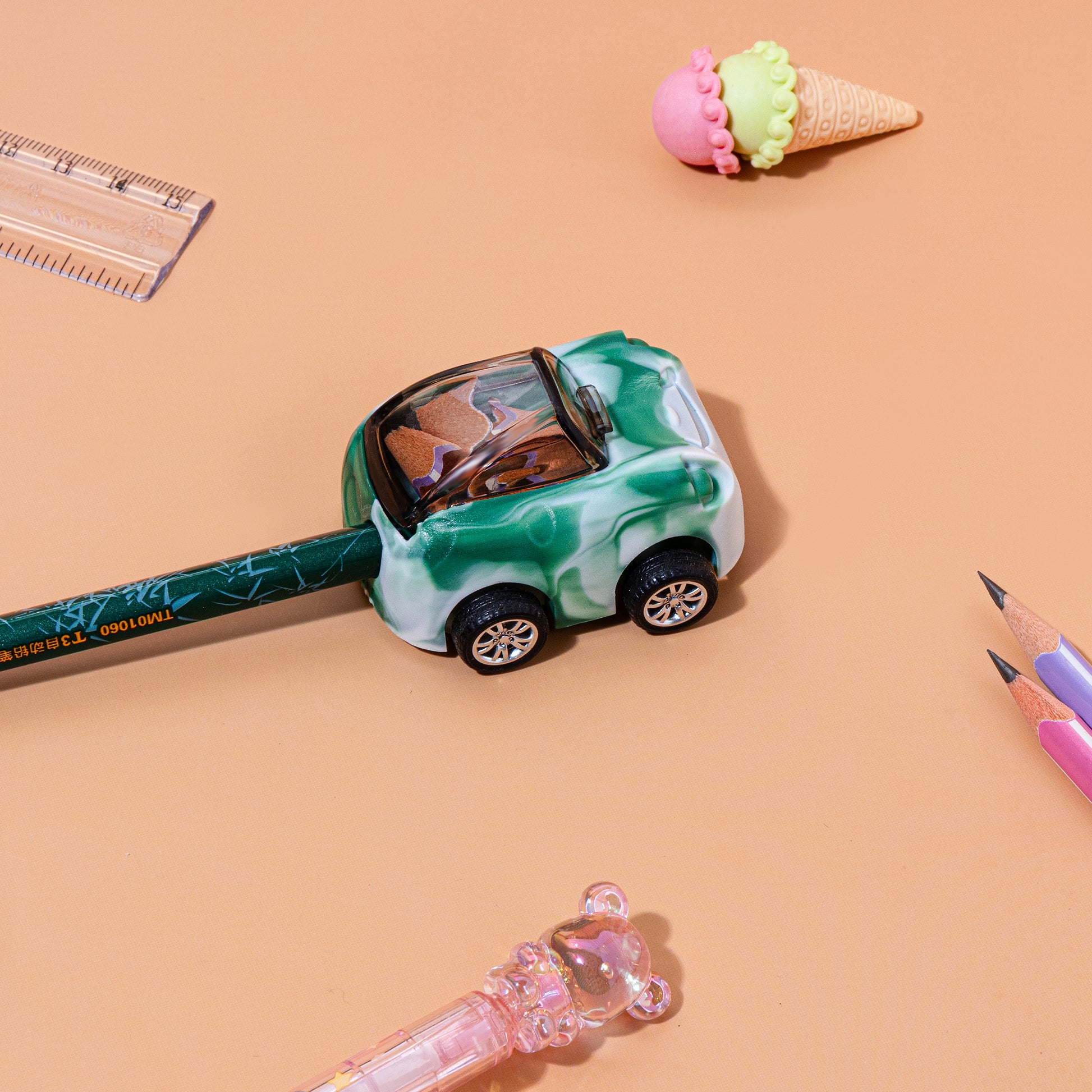 Playful Design: These sharpeners feature vibrant vehicle shapes, such as race cars or buses, often including functional moving wheels that allow them to be rolled like real toys.